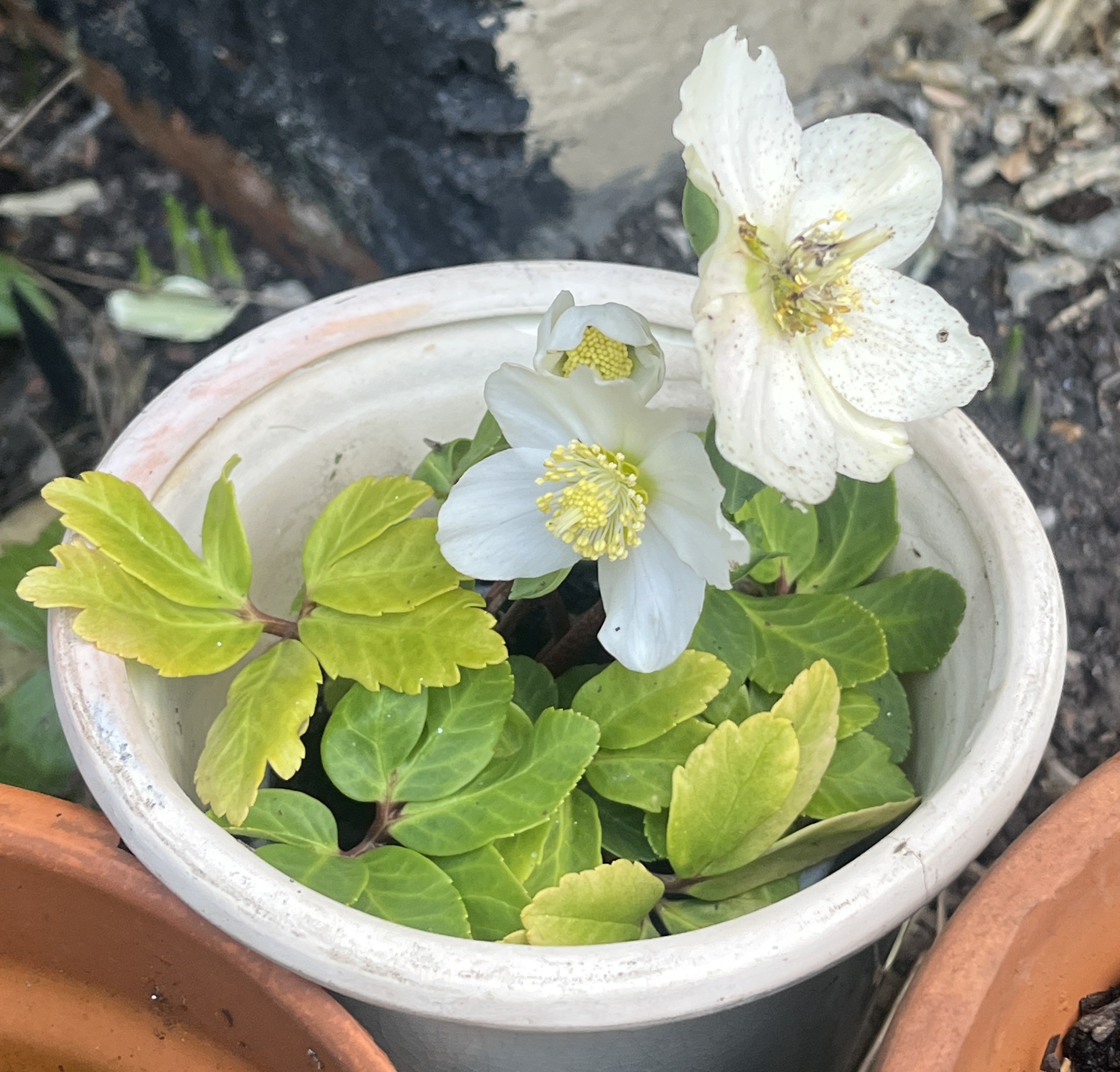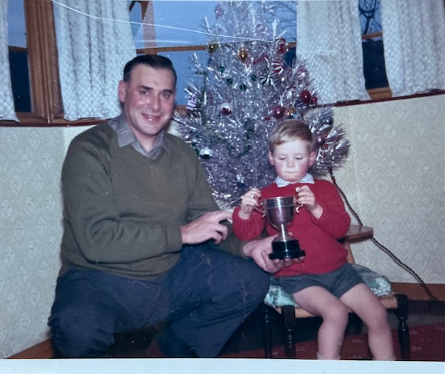 Here’s the same tree in the early 1960s at my mother’s childhood home in Gravesend, Kent. In front of the tree are my grandfather John and my cousin Milton: