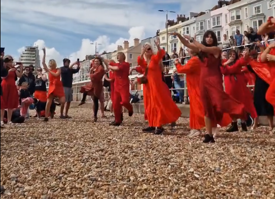 The katebushai all wore floaty red dresses and recreated the dance from ‘Wuthering Heights’ in sync with the music. The official event was actually meant to take place high up on the West Hill, which makes sense, but poor weather the previous day had made the ground so muddy it had to be cancelled by the hosts at the last minute. Nevertheless, some of the dancers quickly organised an unofficial, guerilla version of the event, on the beach by the Goat Ledge café. This, I feel, is the true spirit of Hastings: creative imitation as an unstoppable instinct.